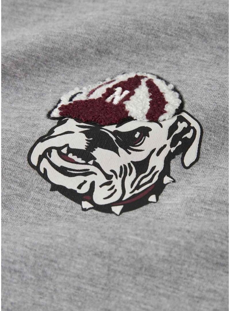 Felpa Name It. Modello Steven. Colore grigio. Tessuto mélange. Orli elasticizzati. Tasca a marsupio. Vestibilità regolare. Con cappuccio. Illustrazione di un Bulldog ricamato sul petto.