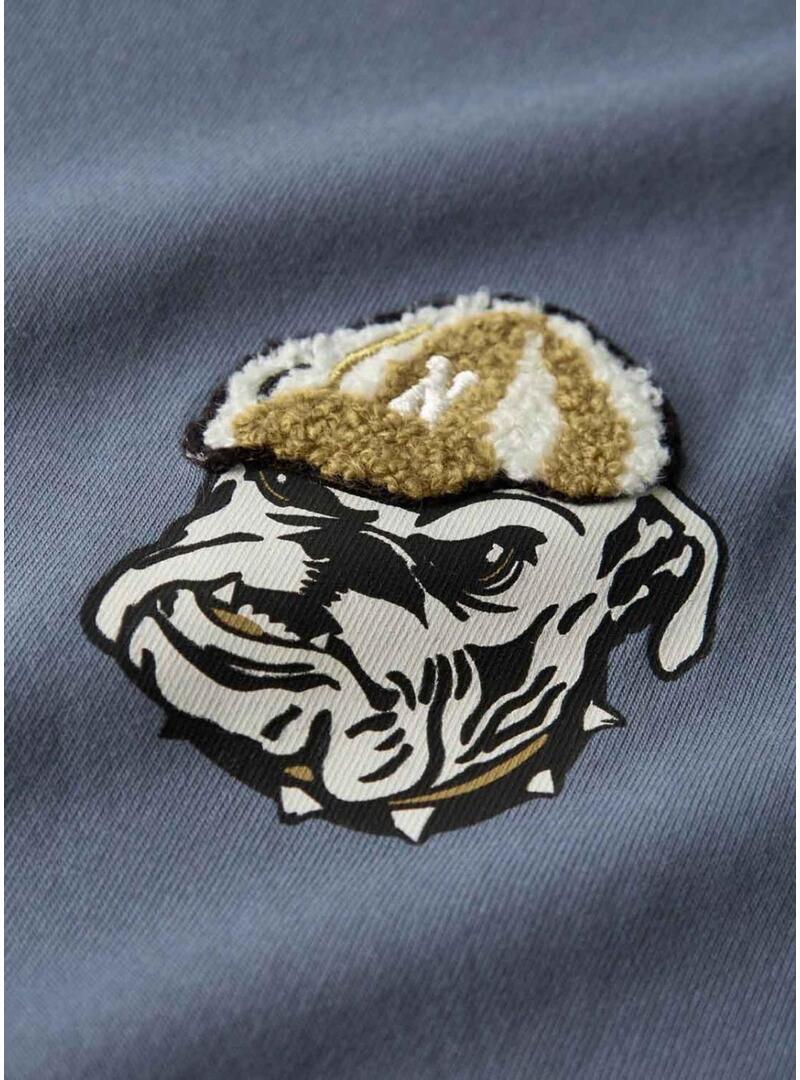 Maglietta Name It. Modello Sato. Colore blu. Girocollo. Manica corta. Vestibilità regolare. Illustrazione di Bulldog stampata sul petto con dettagli in rilievo.