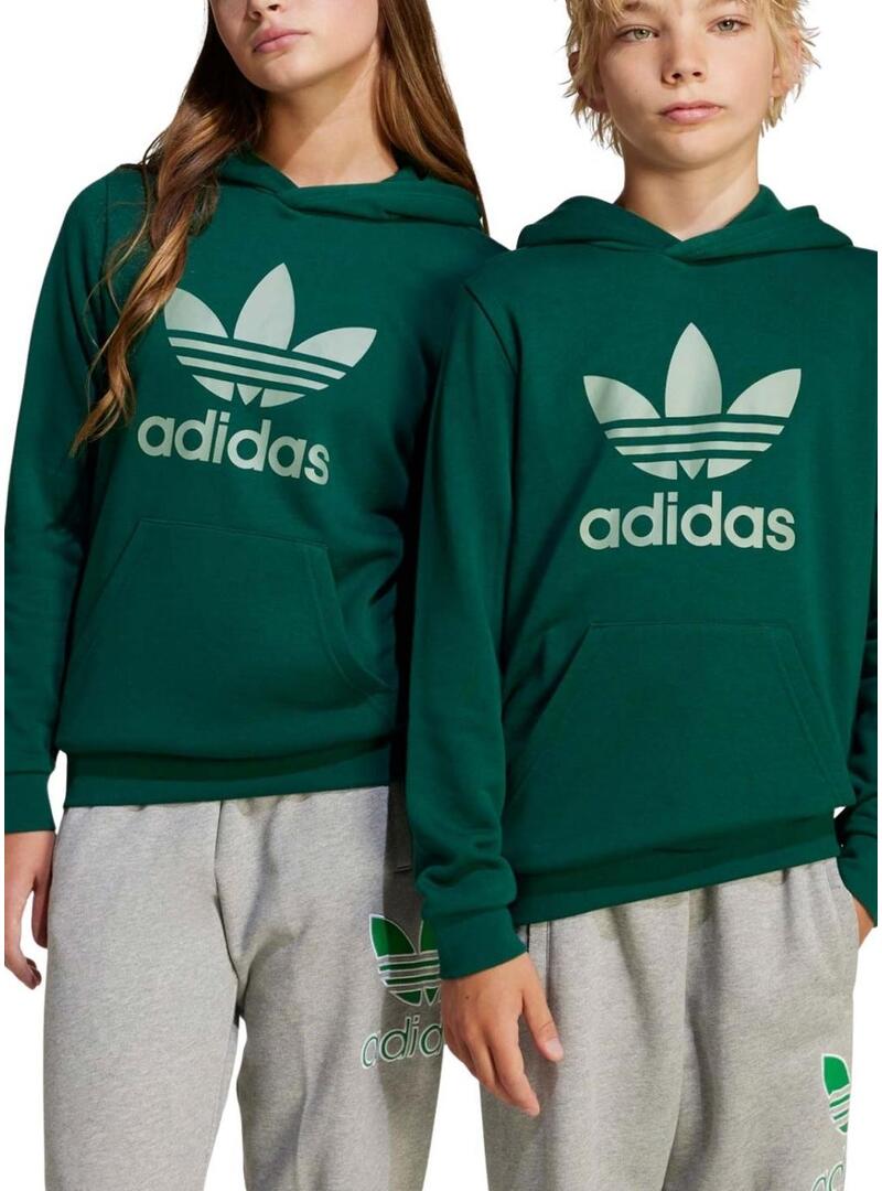 Felpa Adidas Trefoil verde per ragazzi e ragazze