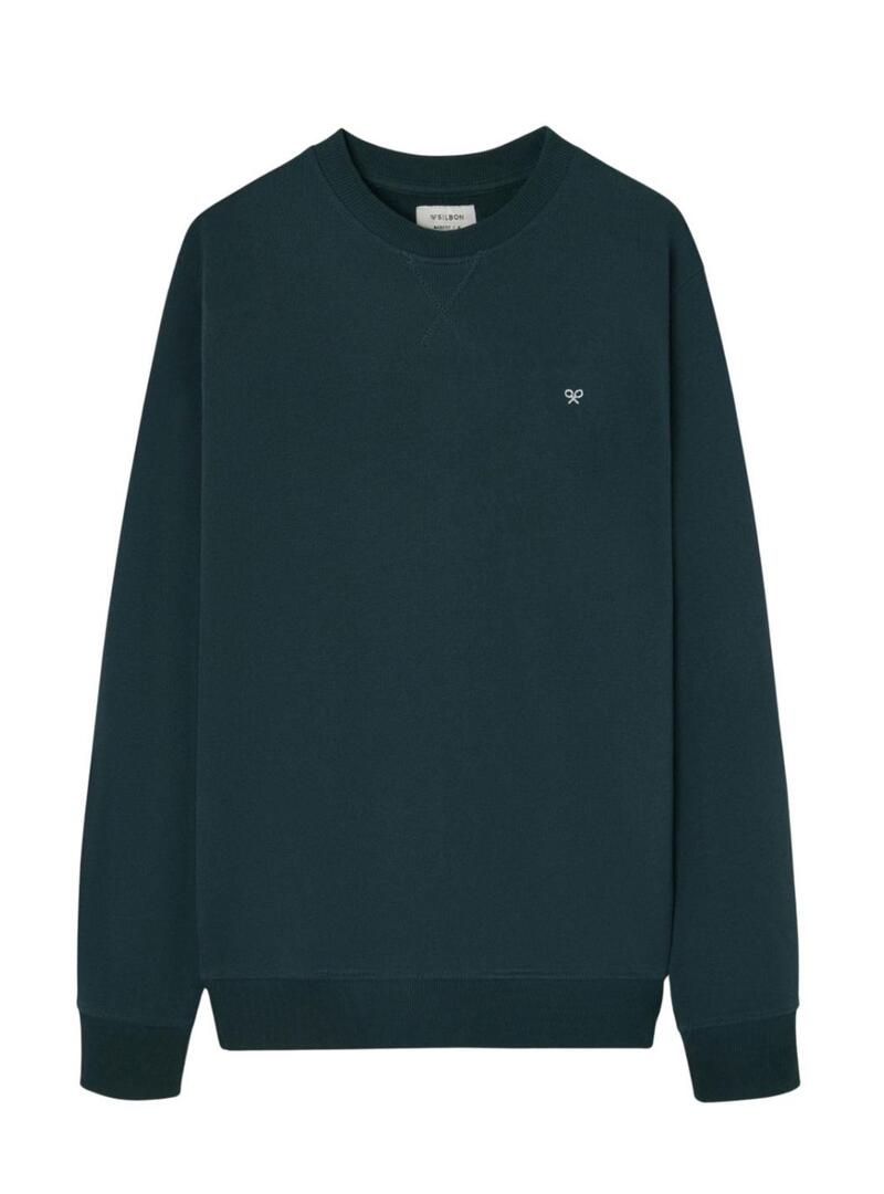 Felpa Silbon. Colore verde. Formato regolare. Girocollo. Manica lunga. Mini racchette ricamate sul petto. Orli a costine. Il modello indossa la taglia M.