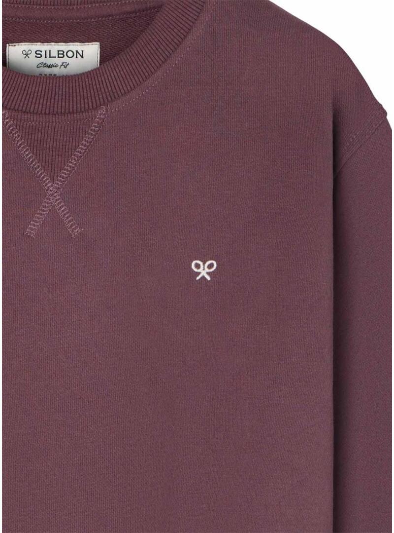 Felpa Silbon. Colore granata. Taglio regolare. Collo rotondo a costine. Manica lunga. Mini racchette ricamate sul petto. Il modello indossa la taglia M.