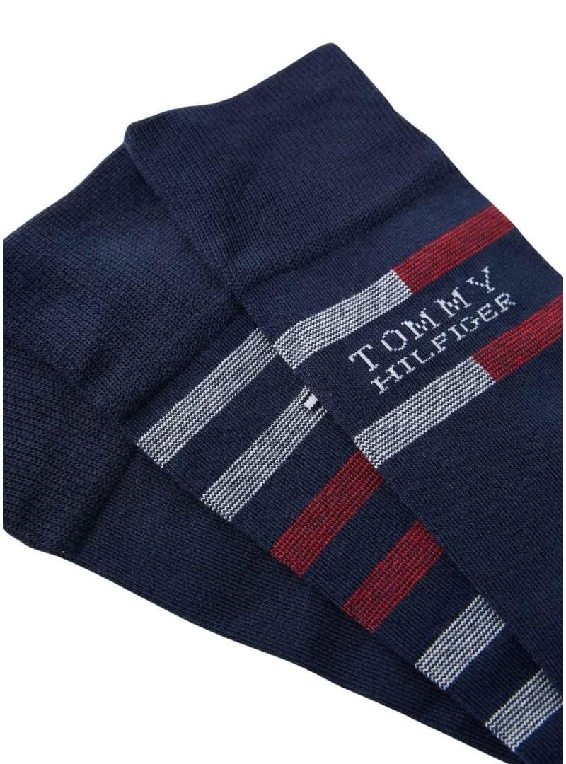 Calze Tommy Hilfiger. Misto cotone elastico. Pacco da 3 paia. Colore blu scuro. Dettaglio del logo del marchio sulla suola del piede. Logo del marchio a intarsia sul gambale. Punta e tallone rinforzati. Lunghezza classica.
