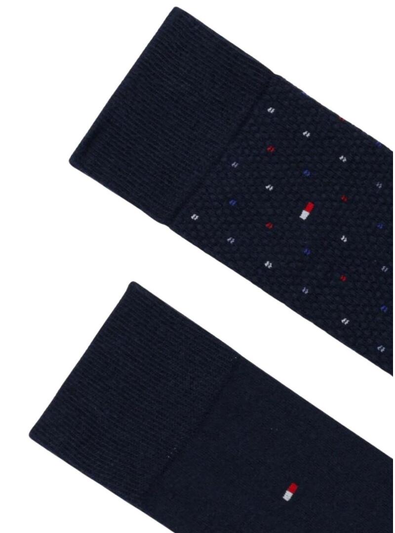 Calze Tommy Hilfiger. Mix di cotone elasticizzato. Confezione da 2 paia. Colore blu scuro. Dettaglio del logo del marchio sulla suola. Logo e decorazioni in intarsia. Lunghezza classica. Tessuto traspirante.