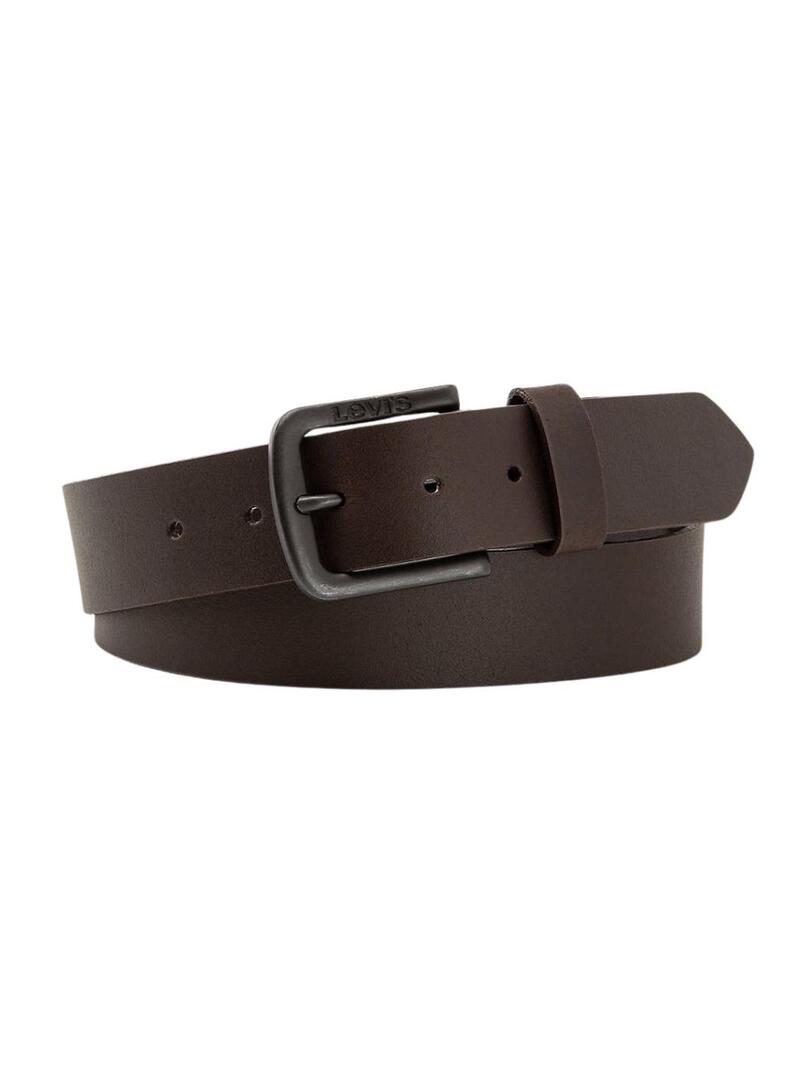Cintura Levi's. Modello fibbia metallica Seine. Colore marrone. Realizzazione resistente. Vera pelle. Fibbia color piombo.
