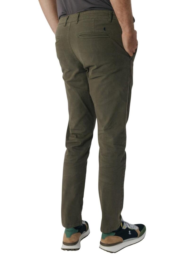 Pantaloni El Pulpo. Modello cinese. Colore verde. Logo ricamato in contrasto sulla tasca posteriore. Chiusura con bottone e zip. Tasche laterali. Tasche posteriori. Vestibilità slim. Il modello indossa la taglia 42.