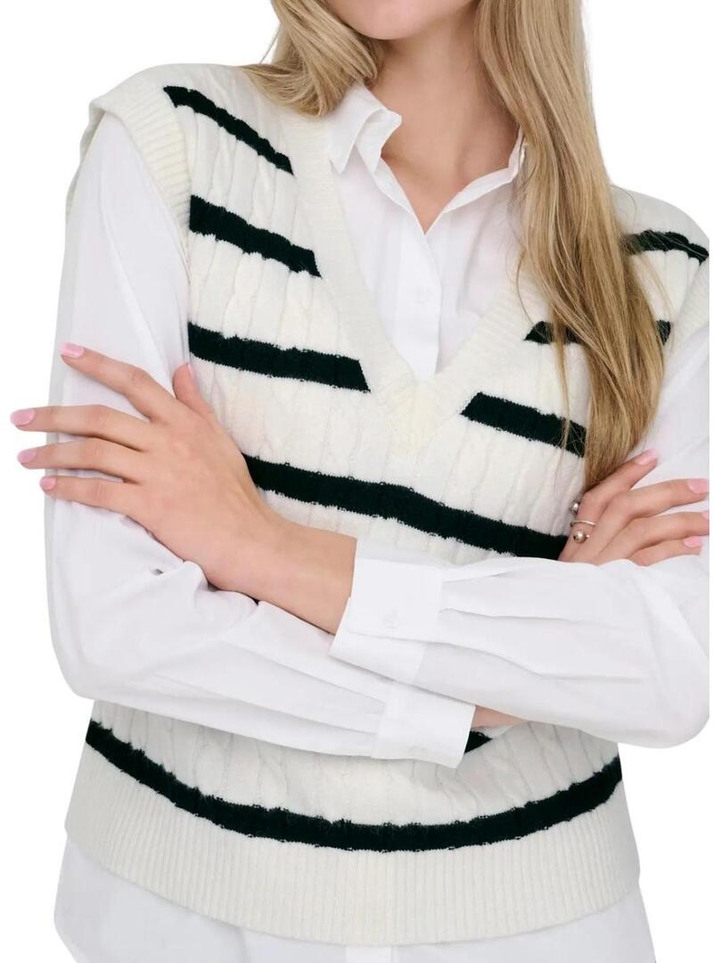 Gilet Only. Colore bianco. Stampa a righe. Collo a V. Senza maniche. Maglia a maglia intrecciata. Taglio regolare. Finiture a coste. Il modello indossa la taglia S.