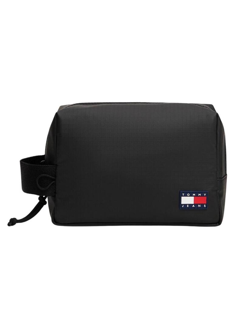 Neceser Tommy Jeans. Modello Daily Tech Ripstop. Colore nero. Tessuto Ripstop rivestito. Finitura testurizzata. Scomparto principale con chiusura a zip. Maniglia laterale. Patch in gomma di Tommy sulla parte anteriore. Patch di Tommy all'interno. Dimensioni: 19x10x12,5 cm. Capacità di 2L.