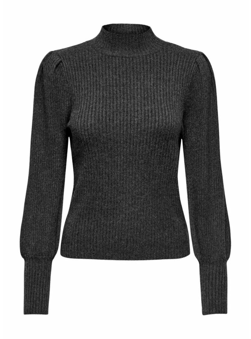 Maglia Only. Modello Onlkatia. Colore grigio. Tessuto morbido. Collo alto. Maniche a palloncino. Taglio aderente. Spalle leggermente arricciate.