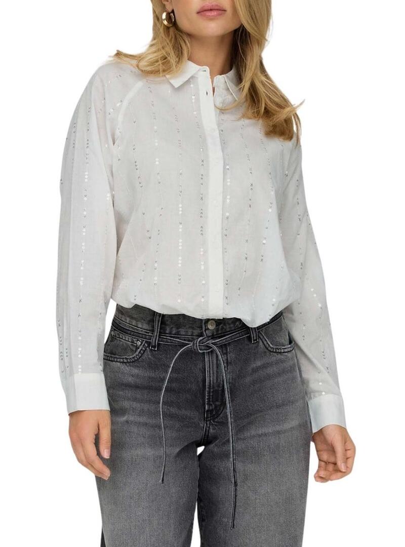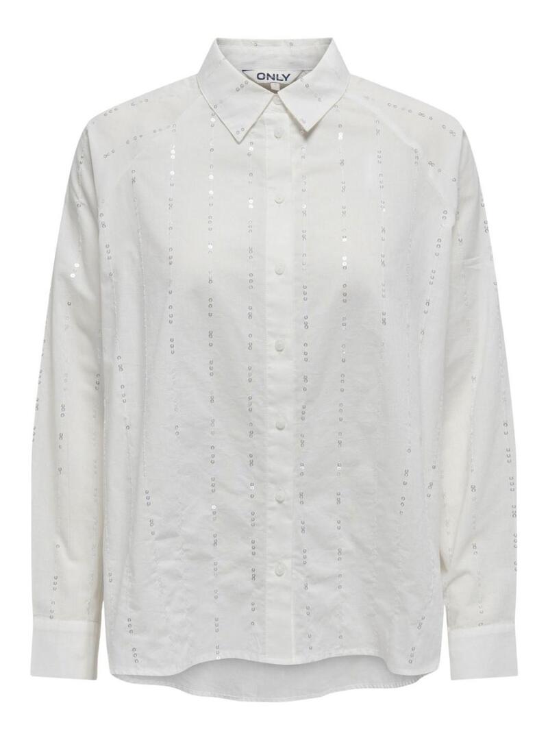 Camicia Only. Modello Onlminna. Colore bianco. Realizzato in cotone. Colletto classico. Polsini abbottonati. Chiusura con bottoni. Taglio regolare. Dettaglio di paillettes.
