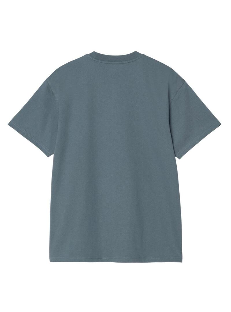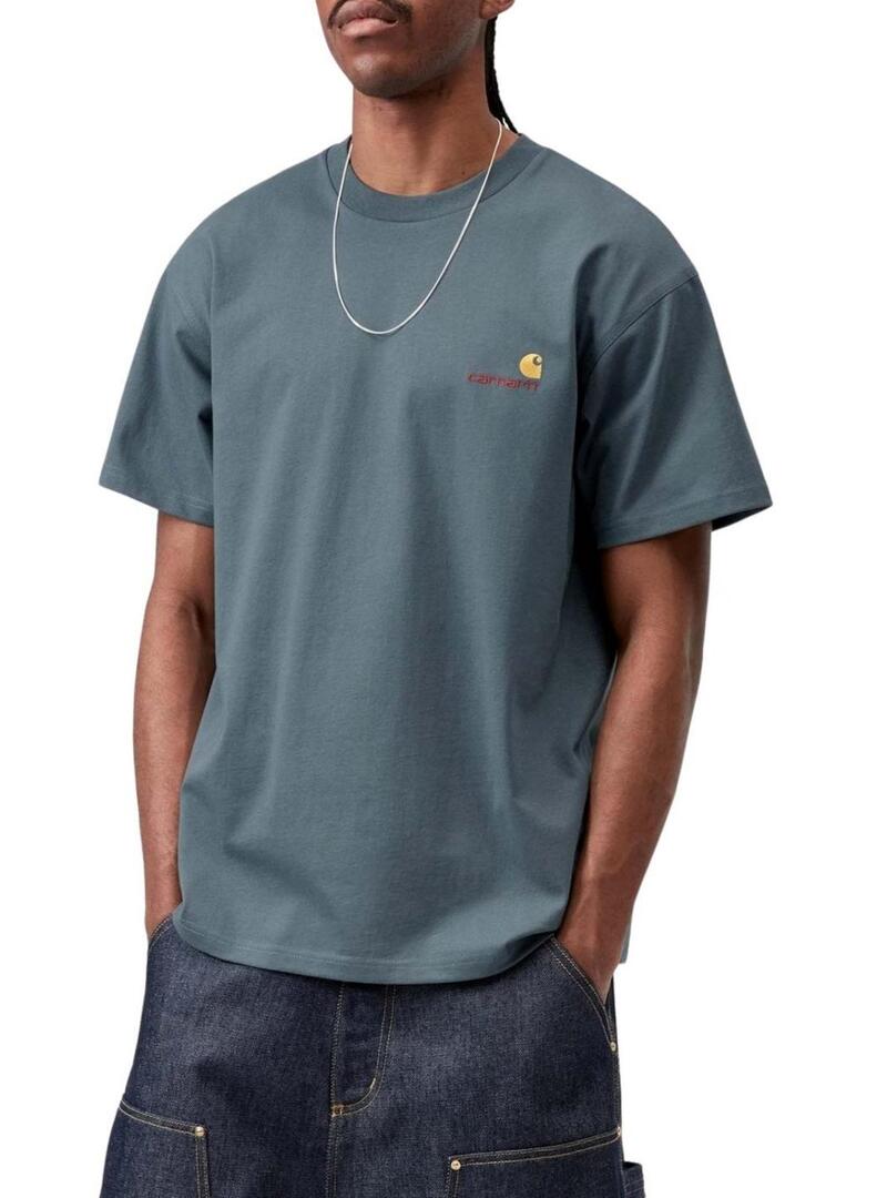 Maglietta Carhartt. Modello American Script. Colore blu. Manica corta. Collo rotondo con rifiniture a coste. Realizzato in cotone biologico. Logo ricamato sul petto. Taglio ampio.