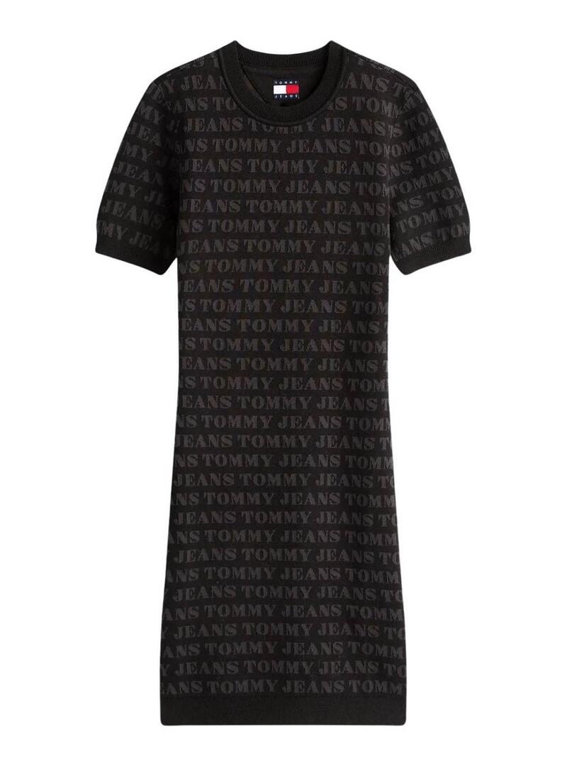 Abito Tommy Jeans. Modello Spellout. Colore nero. Collo rotondo. Manica corta. Orli a costine. Taglio mini. Tessuto a maglia con stampa monogramma del marchio.