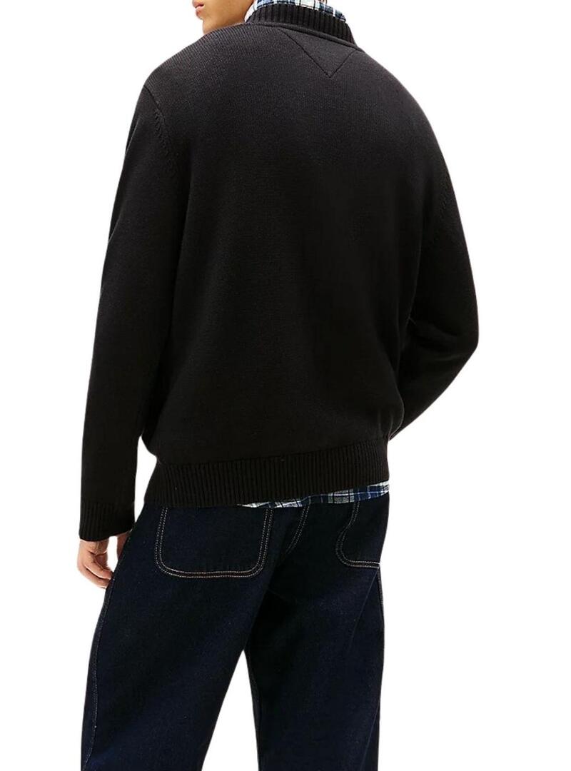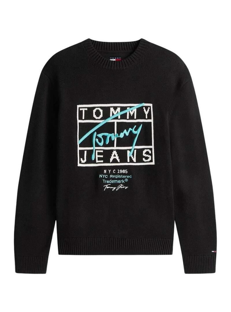 Maglia Tommy Jeans. Modello Signature. Colore nero. Collo rotondo. Manica lunga. Orli a costine. Logo ricamato sul davanti in bianco e turchese. Vestibilità regolare.