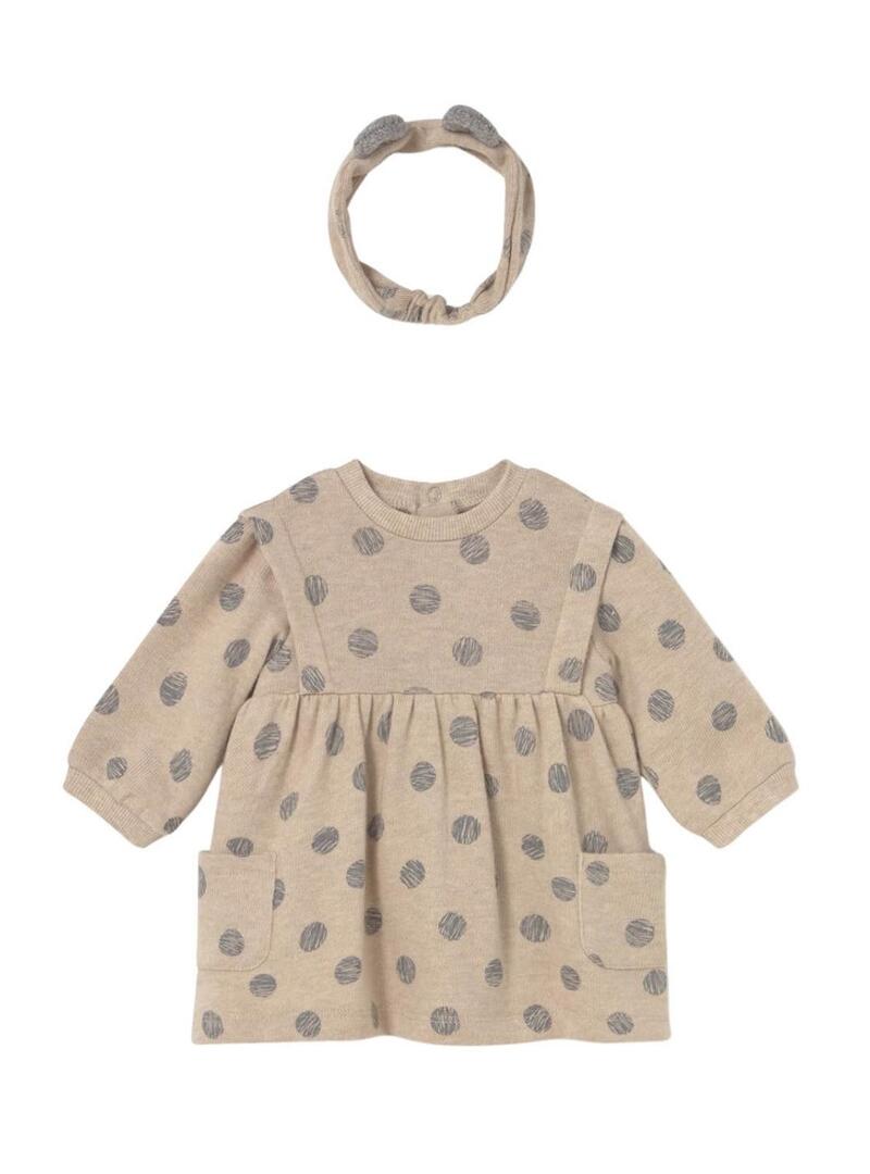 Vestito con cerchietto coordinato Mayoral. Vestito a maniche lunghe. Collo rotondo. Chiusura con bottoni a pressione sul retro. Tasche nella parte anteriore. Stampato a pois. Cerchietto tipo fascia incluso.