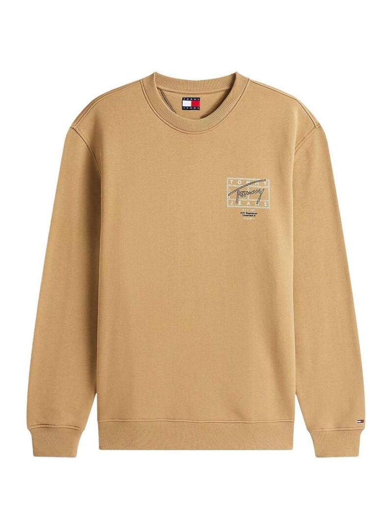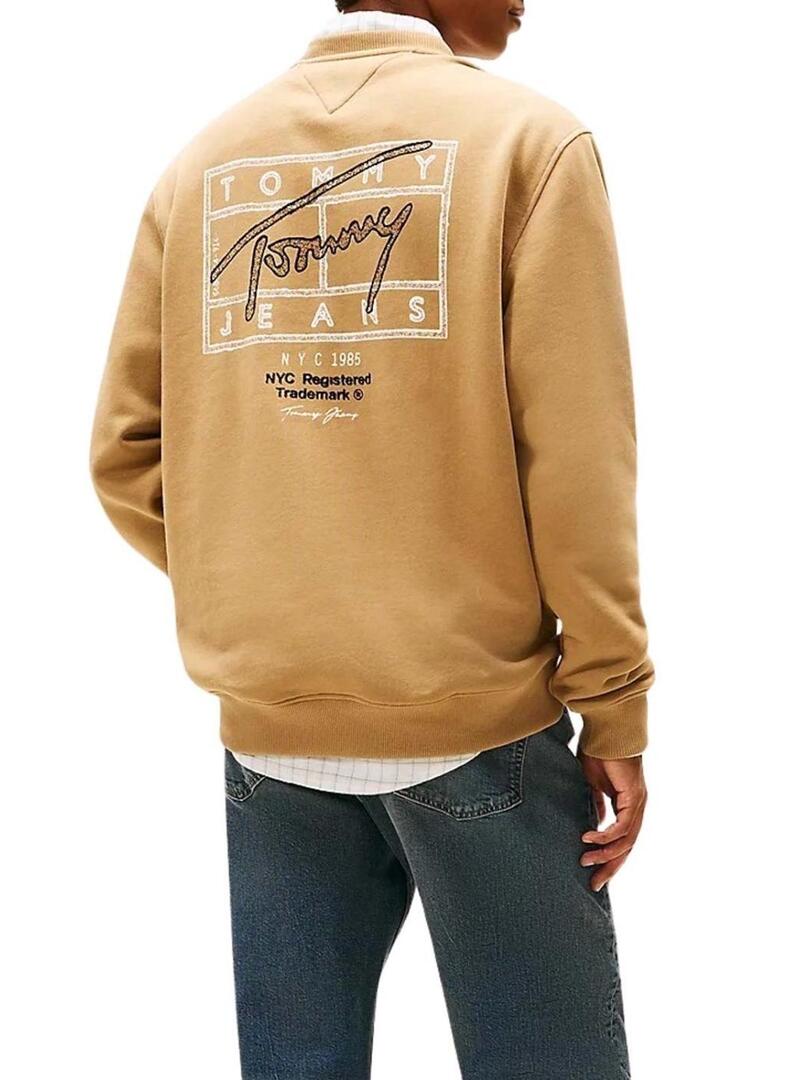 Felpa Tommy Jeans Sing Spray color cammello per uomo