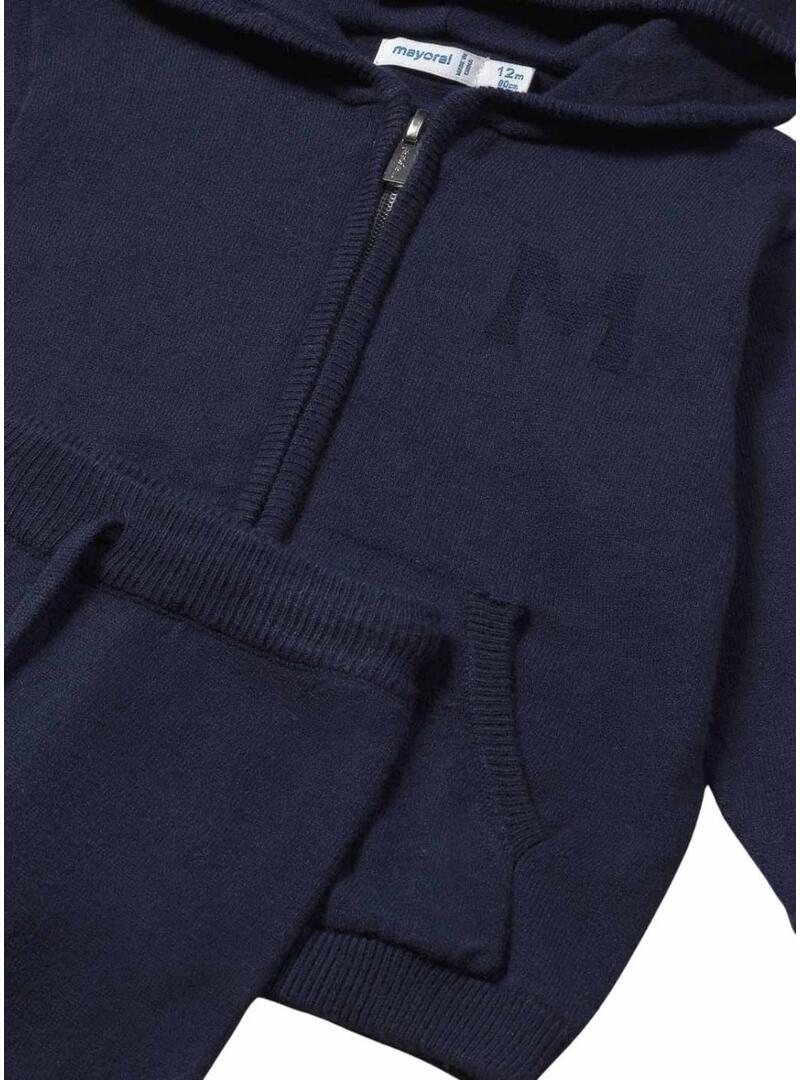 Tuta due pezzi Mayoral in maglia blu scuro per neonato.