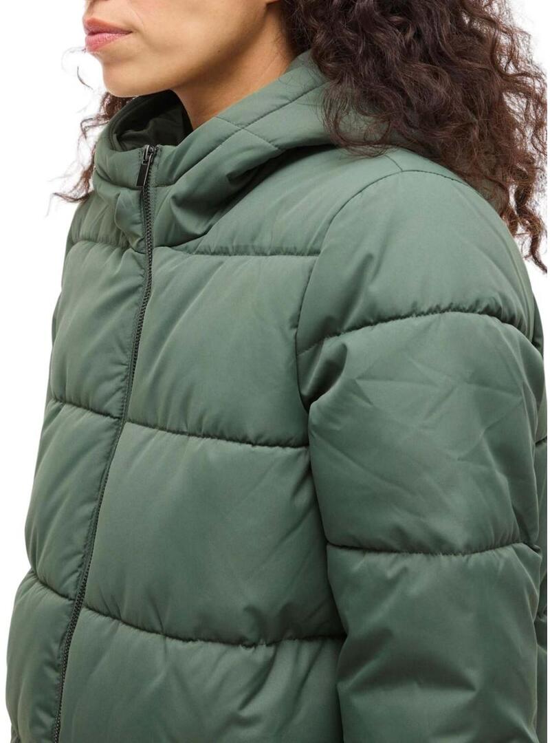 Giacca trapuntata Vila. Modello Karla. Colore verde. Chiusura con zip. Tasche laterali. Con cappuccio. Taglio dritto. Lunghezza sopra al ginocchio.