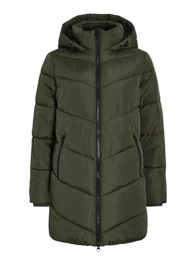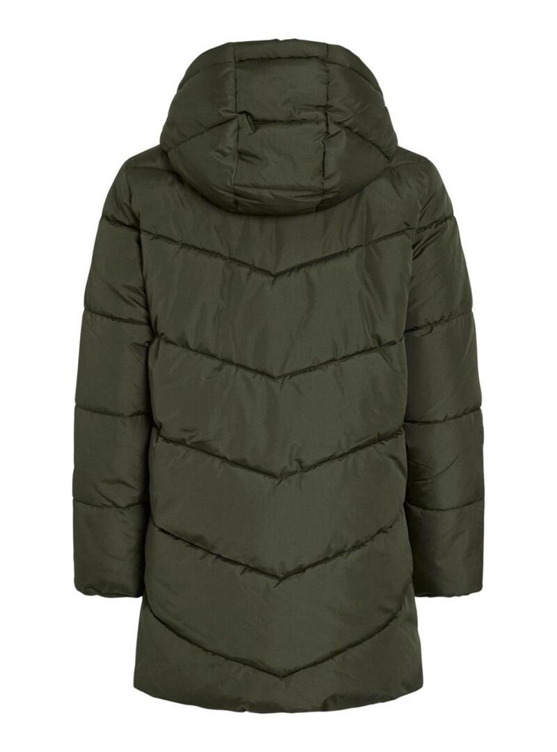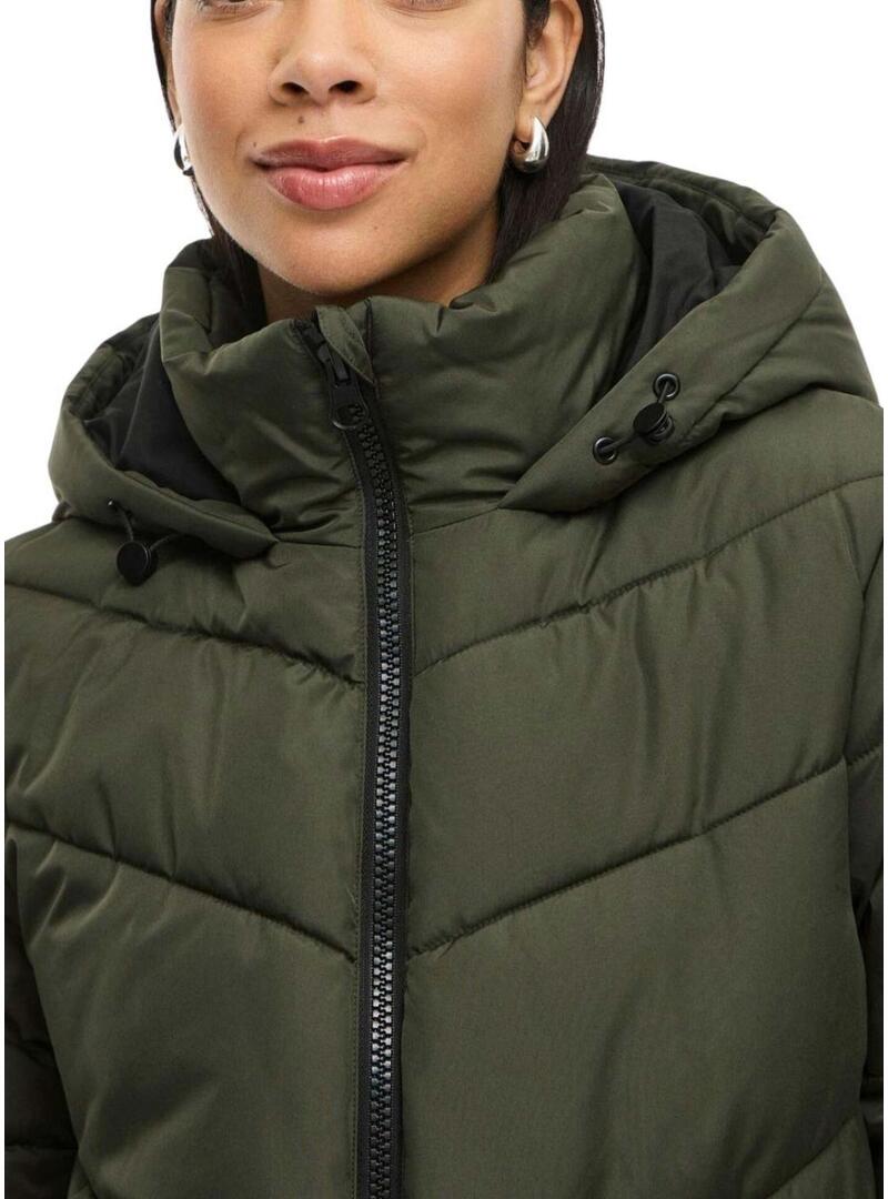 Cappotto trapuntato Vila. Modello Milja. Colore verde. Chiusura con zip bidirezionale. Colletto alto. Con cappuccio. Tasche laterali con zip. Polsini elastici. Lunghezza media.