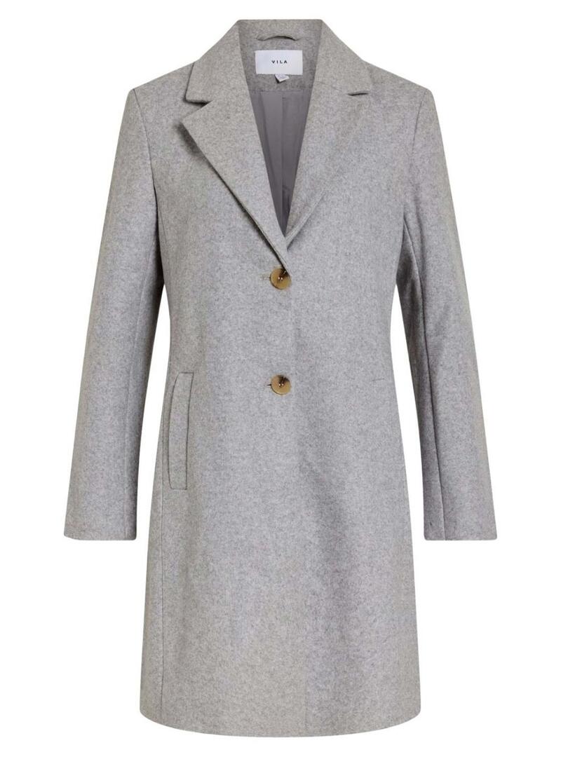 Cappotto Vila. Modello Claudia. Colore grigio. Chiusura con due bottoni. Vestibilità regolare. Taglio dritto. Tasche laterali. Lunghezza media. Stile basic.