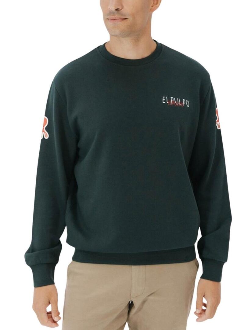 Felpa El Pulpo. Modello Triple Logo. Colore verde. Collo rotondo. Manica lunga. Orli a costine. Vestibilità regolare. Marchio stampato sul petto. Logo stampato sulla manica e sulla schiena.