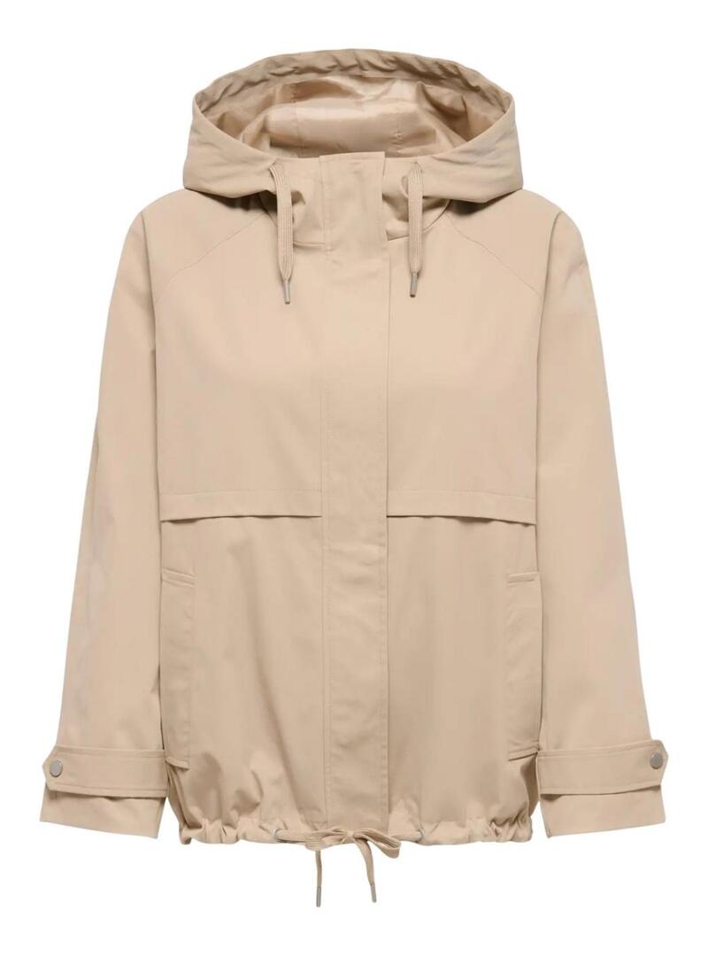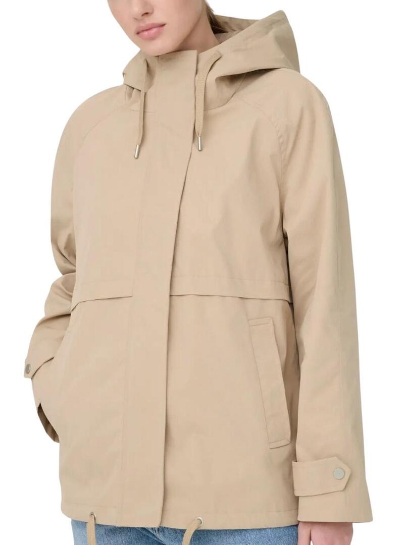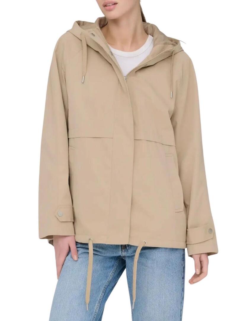 Parka Only. Modello Orchid. Colore beige. Chiusura lampo nascosta. Collo alto. Cappuccio con coulisse regolabile. Tasche laterali. Cucitura centrale. Fondo regolabile con coulisse.