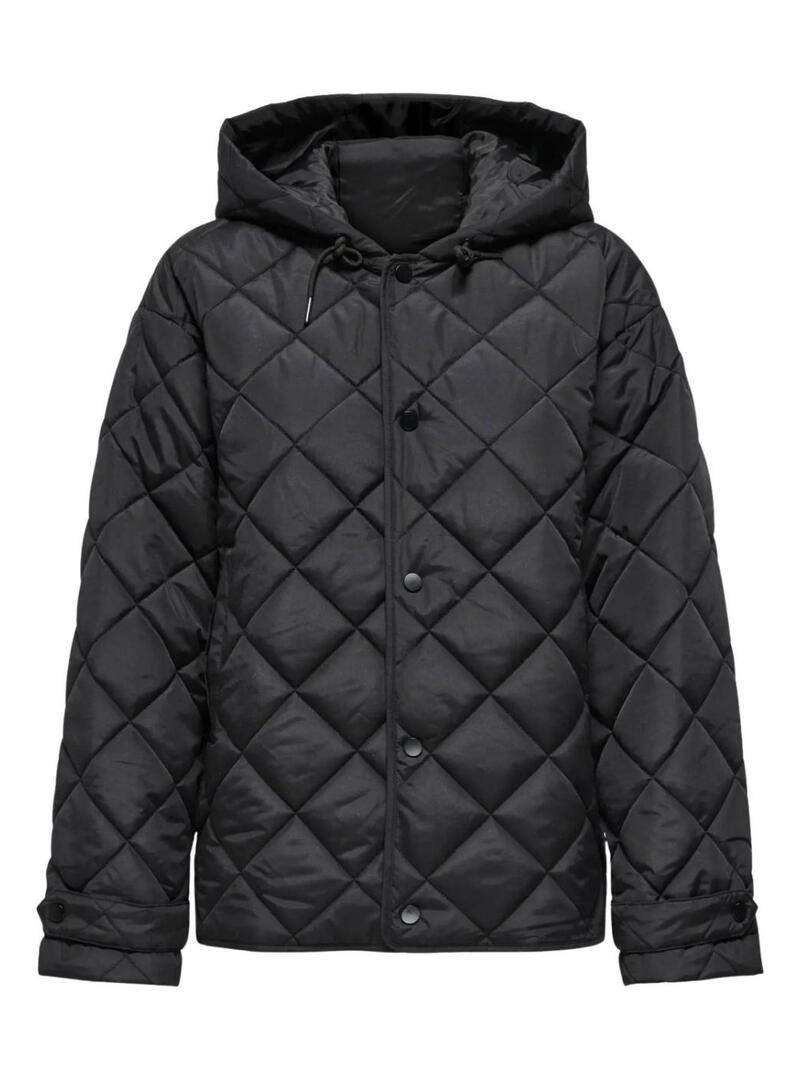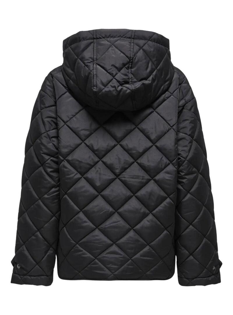 Giacca Only. Modello Juliet. Colore nero. Chiusura con bottoni automatici. Cappuccio con coulisse regolabile. Tasche laterali. Vestibilità comoda. Imbottitura geometrica a rombi.