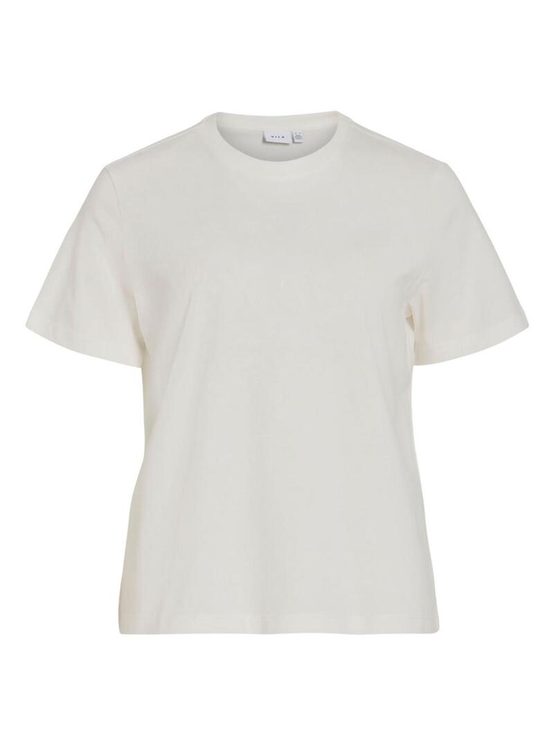Maglietta Vila. Modello Visybilla Rose. Colore bianco. Stile basic. Stampe tono su tono di rose sul davanti. Collo rotondo. Manica corta. Vestibilità dritta.