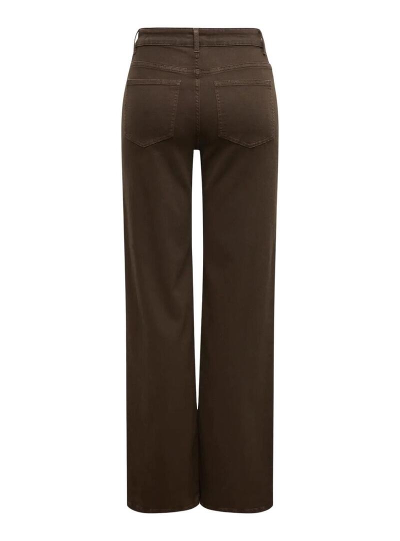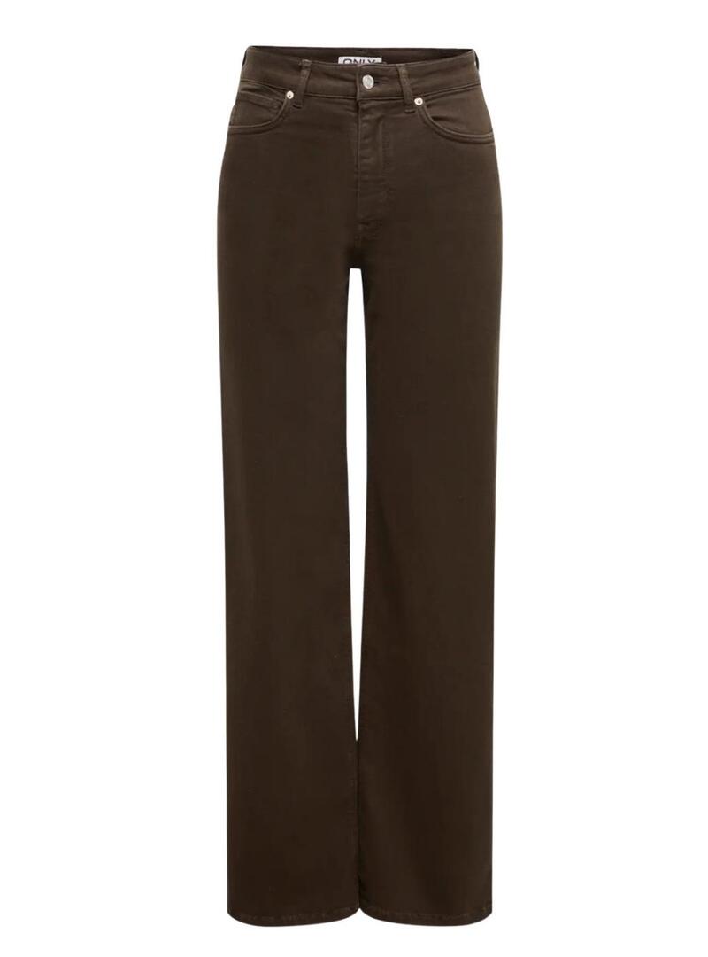 Pantaloni in denim Only. Modello Madison. Colore marrone. Vita alta. Chiusura con bottone e cerniera. Gamba ampia. Vita alta. Tessuto elasticizzato. Cinque tasche. Stile basic.