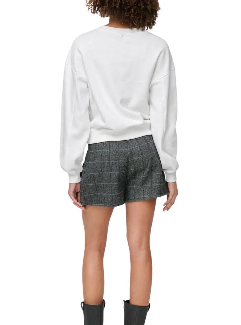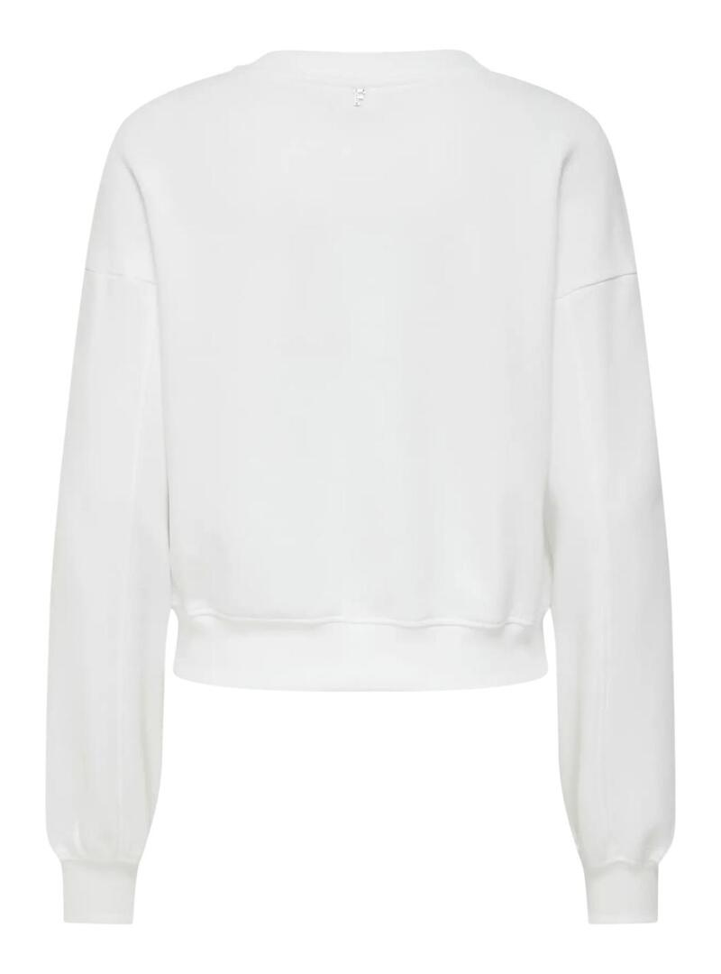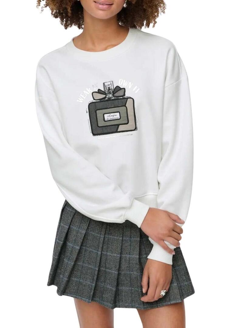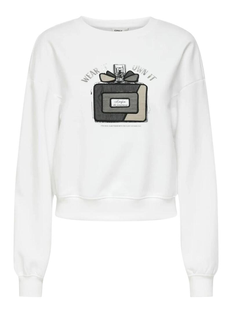 Felpa Only. Modello Emily. Colore bianco. Collo rotondo. Orli a costine. Vestibilità regolare. Spalle cadenti. Illustrazione profumo stampata sul davanti.