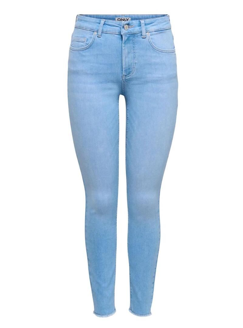 Pantaloni in denim Only. Modello Blush. Colore denim chiaro. Effetto lavato. Vita media. Chiusura con bottone e zip. Gamba skinny. Tessuto elasticizzato. Taglio aderente.