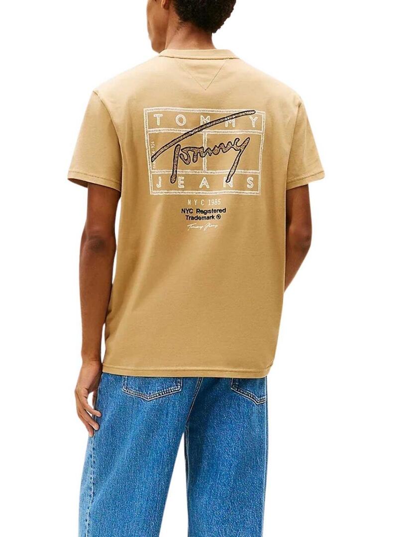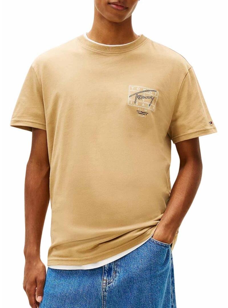 Maglietta Tommy Jeans Sign Spray beige per uomo
