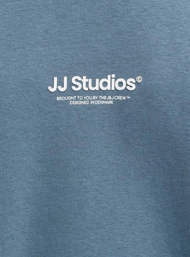 Felpa Jack and Jones. Modello Soho. Colore blu. Girocollo. Manica lunga. Orli a costine. Logo stampato sul petto. Vestibilità regolare.