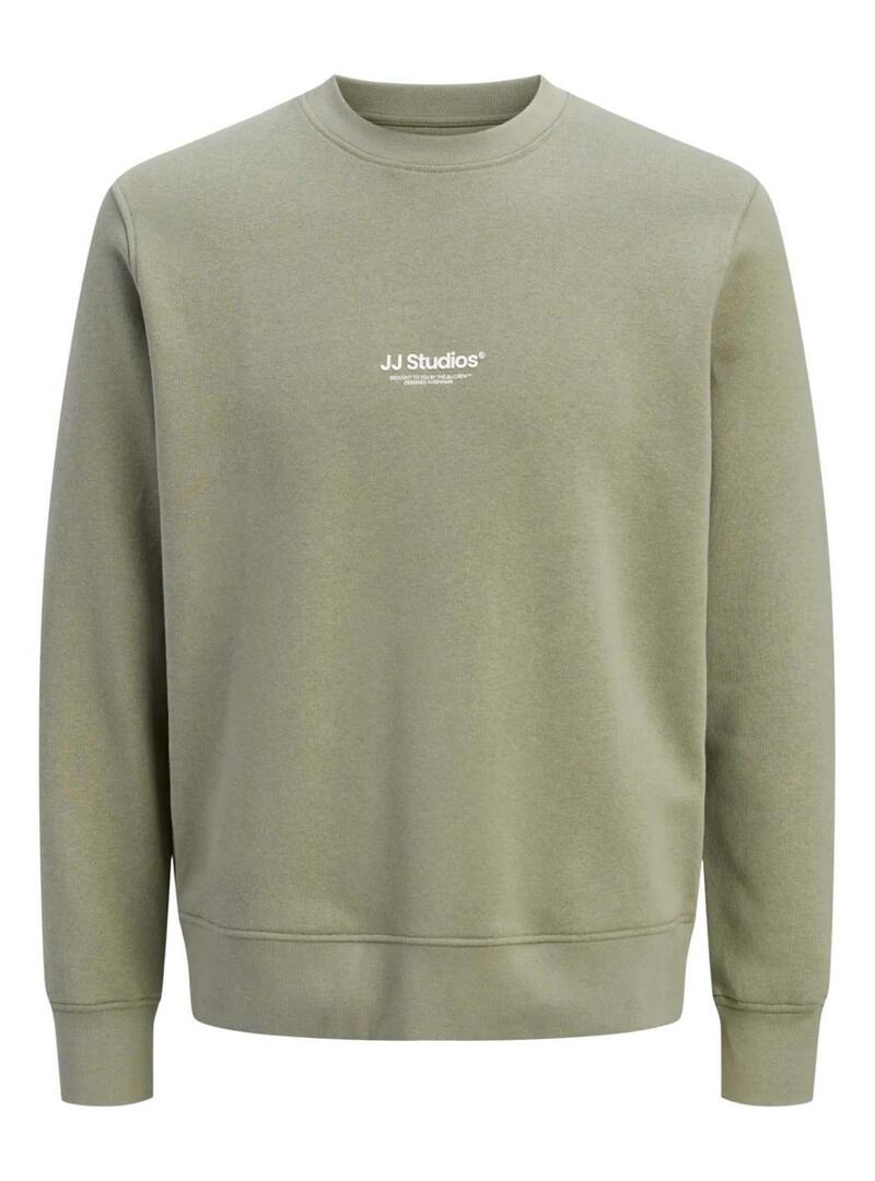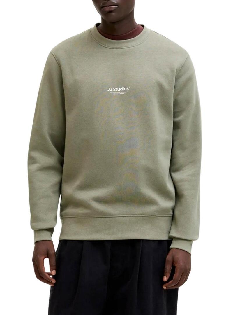 Felpa Jack and Jones. Modello Soho. Colore verde. Collo rotondo. Manica lunga. Orli a costine. Logo stampato sul petto. Vestibilità regolare.