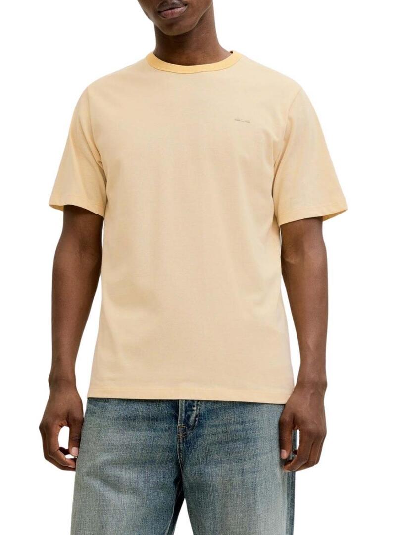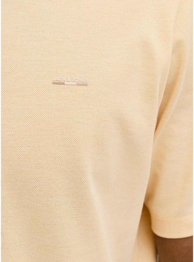 Maglietta Jack and Jones. Modello Blualves. Colore giallo burro. Collo rotondo. Manica corta. Vestibilità regolare. Tessuto in piqué di cotone sottile. Logo discreto sul petto.