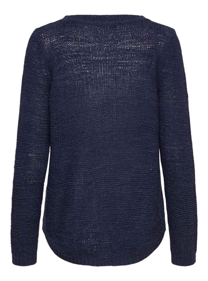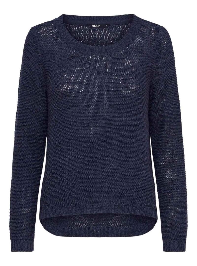 Maglia Only. Modello Geena. Colore blu scuro. Collo tondo ampio. Manica lunga. Orli a costine. Taglio regolare. Tessuto a maglia piana.