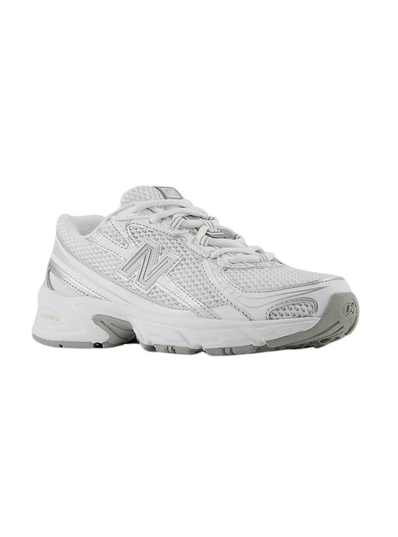 Sneakers New Balance GR740 bianche e argento per donna.