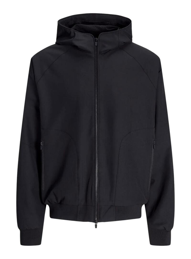 Giacca Jack and Jones. Modello Perfect. Colore nero. Stile bomber. Colletto alto con cappuccio. Chiusura con zip. Orli a costine. Tasche laterali con zip. Materiali riciclati.