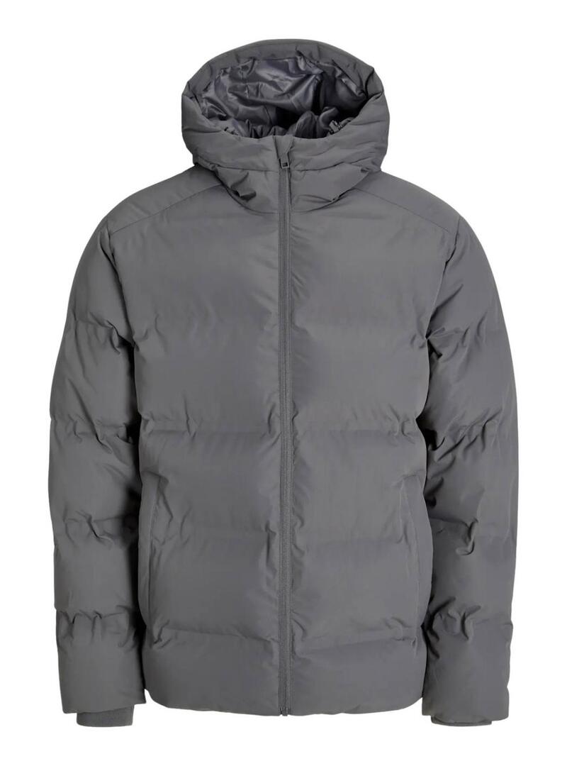 Giacca trapuntata Jack and Jones. Modello Soho. Colore grigio. Tessuto trapuntato. Chiusura con zip. Collo alto con cappuccio. Tasche laterali. Vestibilità regolare.