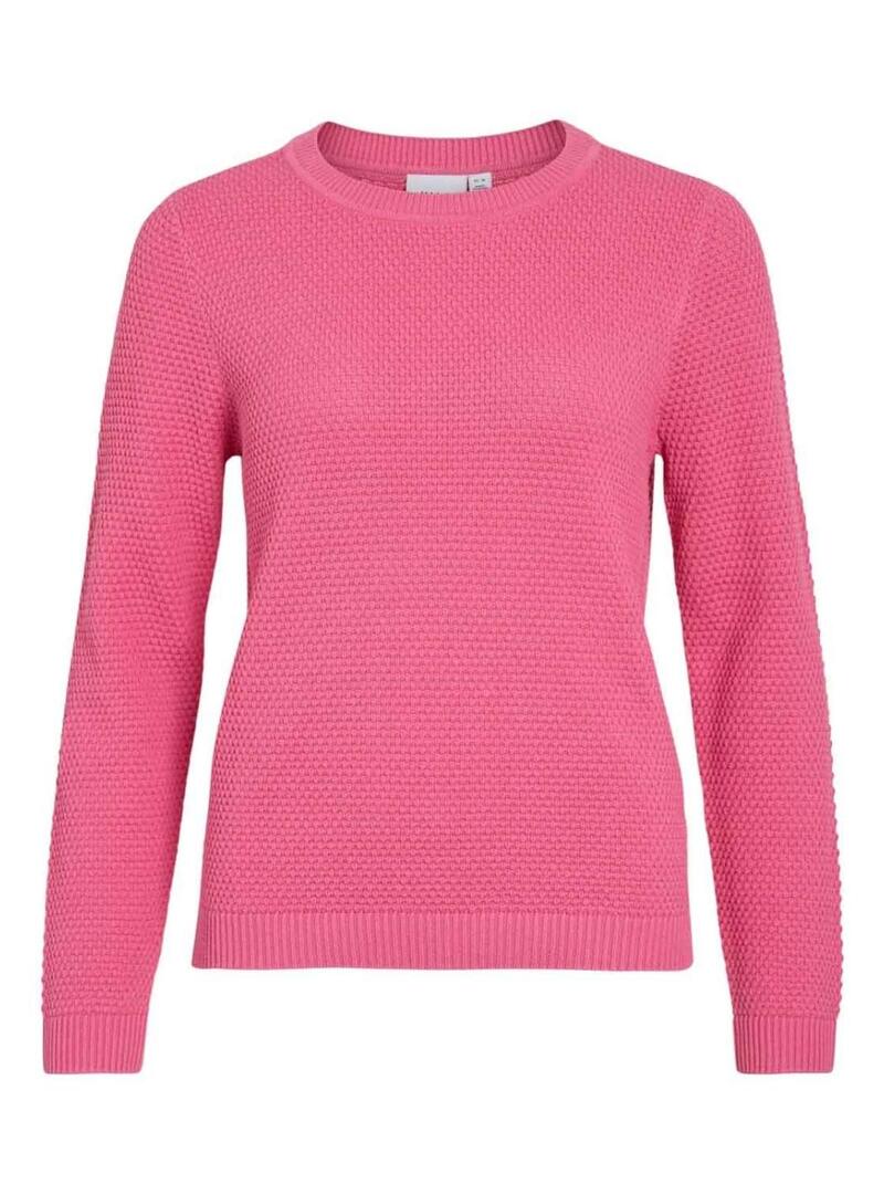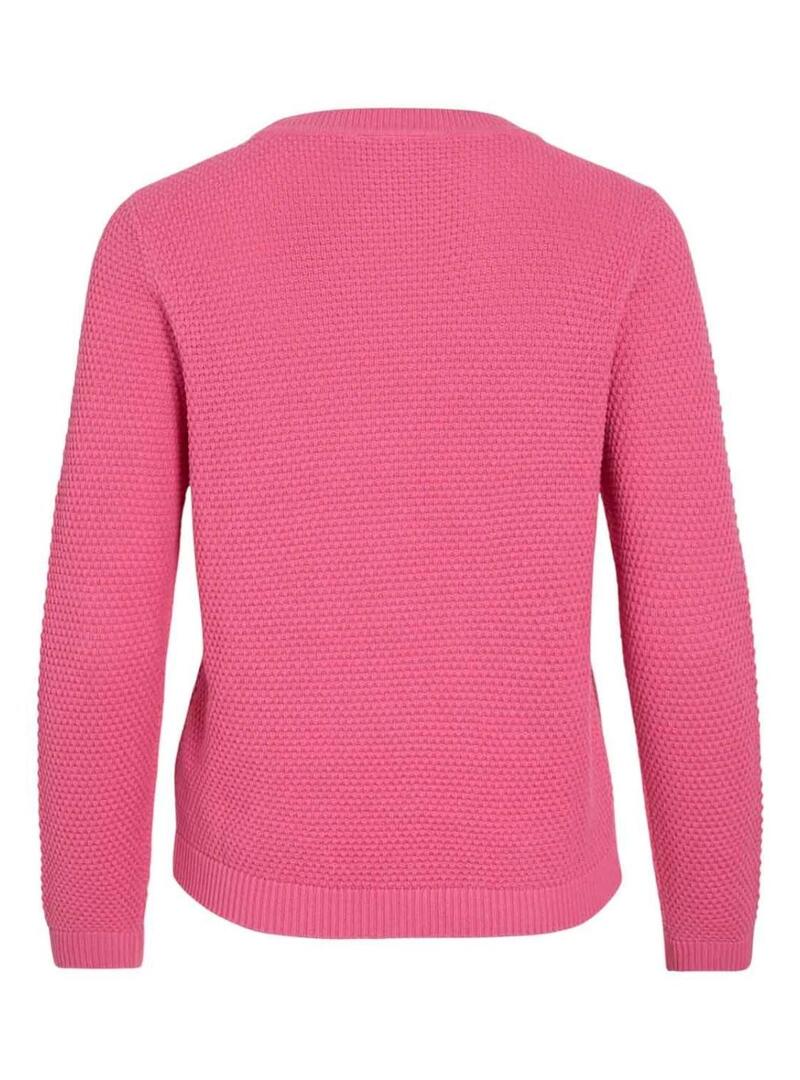 Maglia Vila. Modello Vidalo. Colore rosa fucsia. Girocollo. Maniche lunghe. Vestibilità regolare. Tessuto a maglia stile goffrato. Orli a costine.