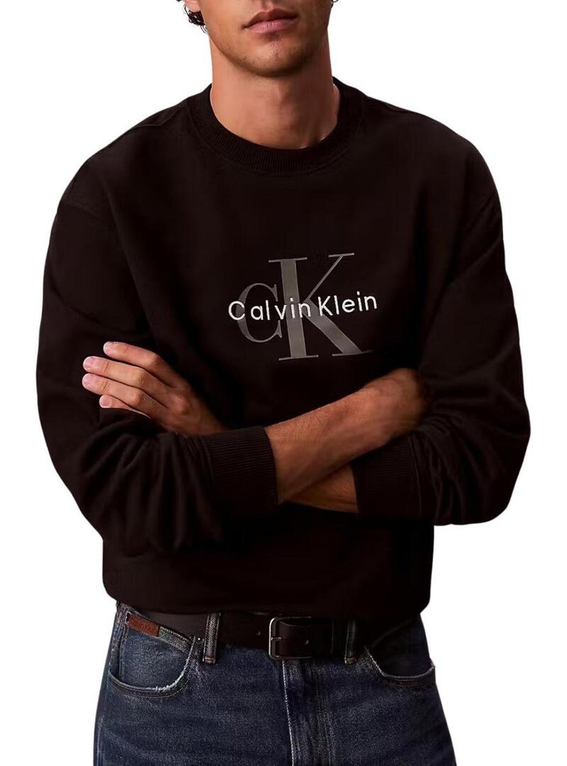 Felpa Calvin Klein Jeans. Modello Monologo. Colore nero. Collo rotondo. Manica lunga. Estremità a coste. Vestibilità regolare. Logo ricamato sul davanti.