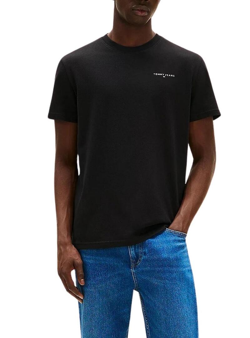 Maglietta Tommy Jeans Linear Chest nera per uomo.
