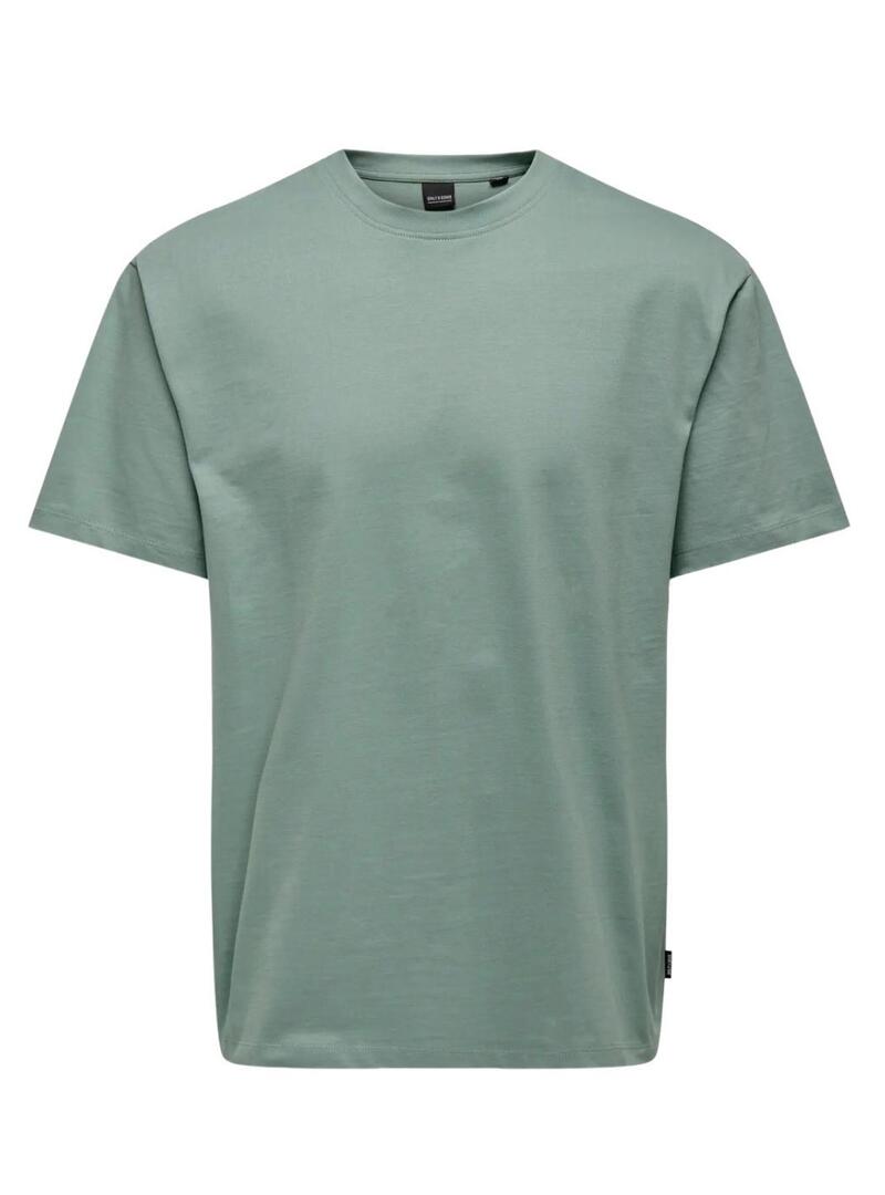Maglietta Only and Sons. Modello Fred. Colore turchese. Collo rotondo. Manica corta. Vestibilità ampia. Stile basico. Etichetta laterale del marchio.