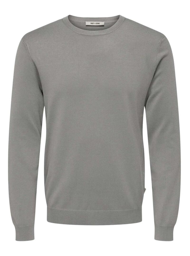 Maglione Only and Sons. Modello Wyler. Colore grigio. Collo rotondo. Manica lunga. Orli a costine. Taglio aderente.
