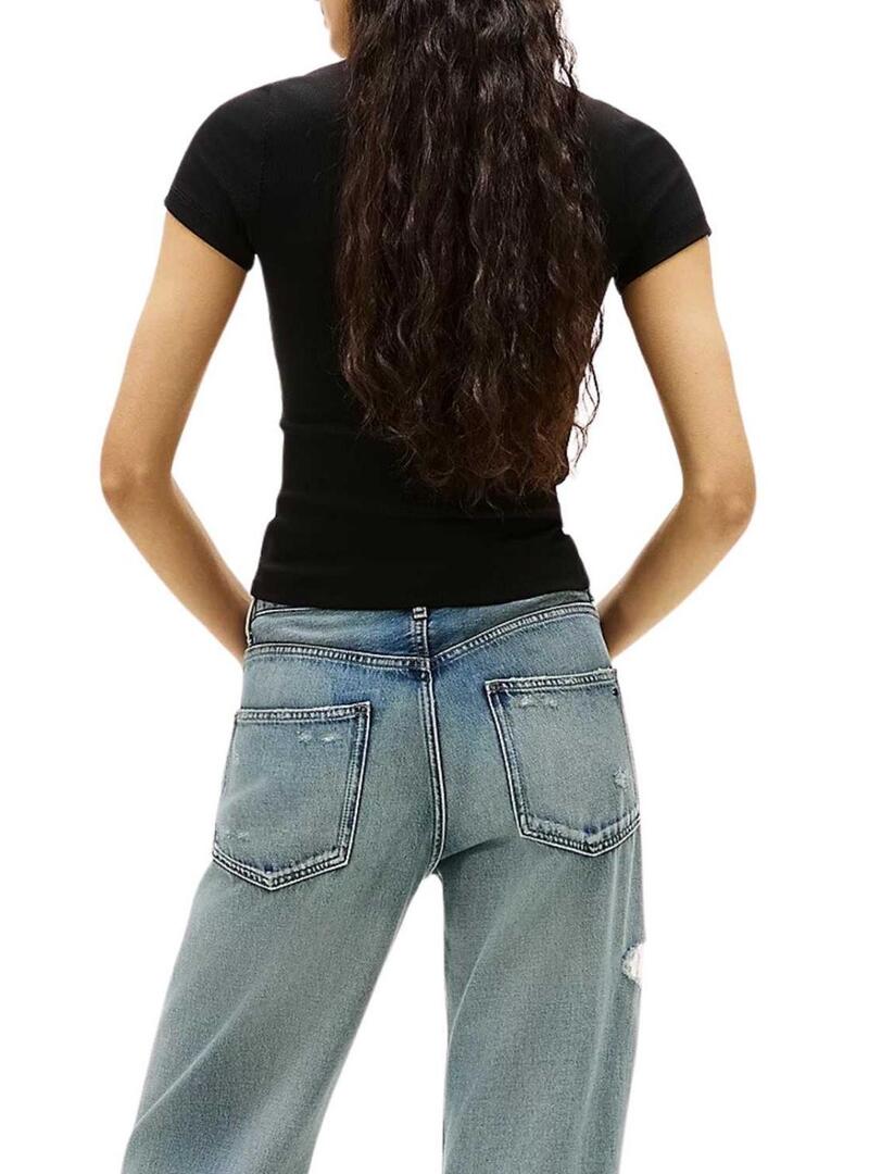 Maglietta Tommy Jeans. Modello Slim badge. Colore nero. Collo rotondo. Manica corta. Patch del marchio sul petto. Tessuto a coste. Taglio aderente.