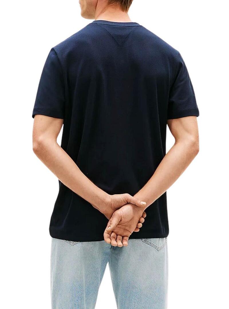 Maglietta Tommy Hilfiger. Modello con tasca sul petto. Colletto rotondo. Colore blu scuro. Manica corta. Vestibilità regolare. Bandiera ricamata sulla manica. Banda sulla tasca in rosso e bianco.
