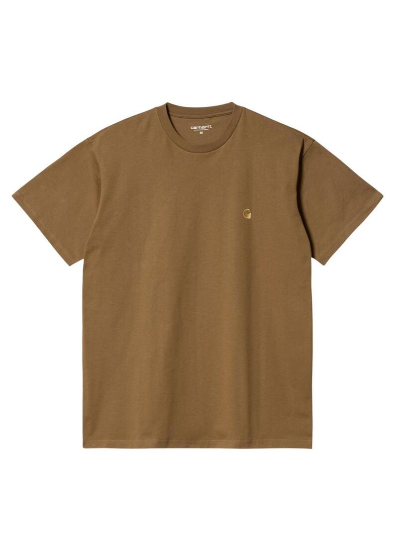 Maglietta Carhartt. Modello Chase. Colore marrone. Manica corta. Colletto rotondo. Logo ricamato sul petto in filo dorato. Vestibilità dritta.