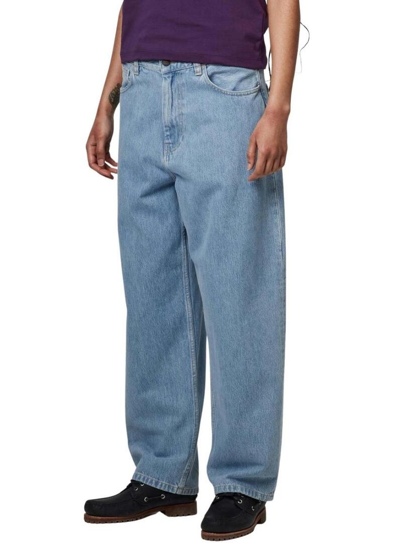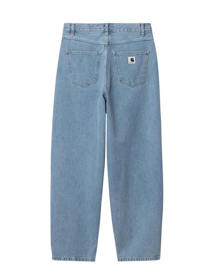 Pantaloni in denim Carharrt. Modello Brandon. Denim chiaro. Cinque tasche. Stile baggy dad. Chiusura a bottone e zip. Vestibilità larga. Patch del marchio sulla tasca posteriore.