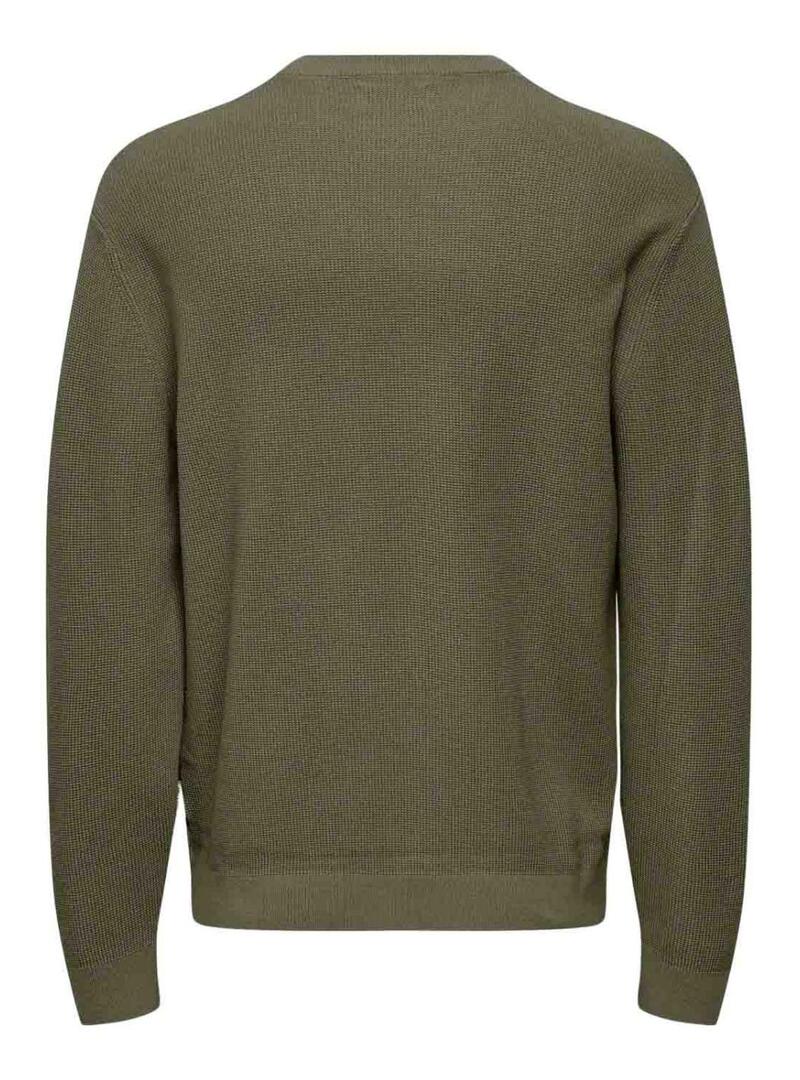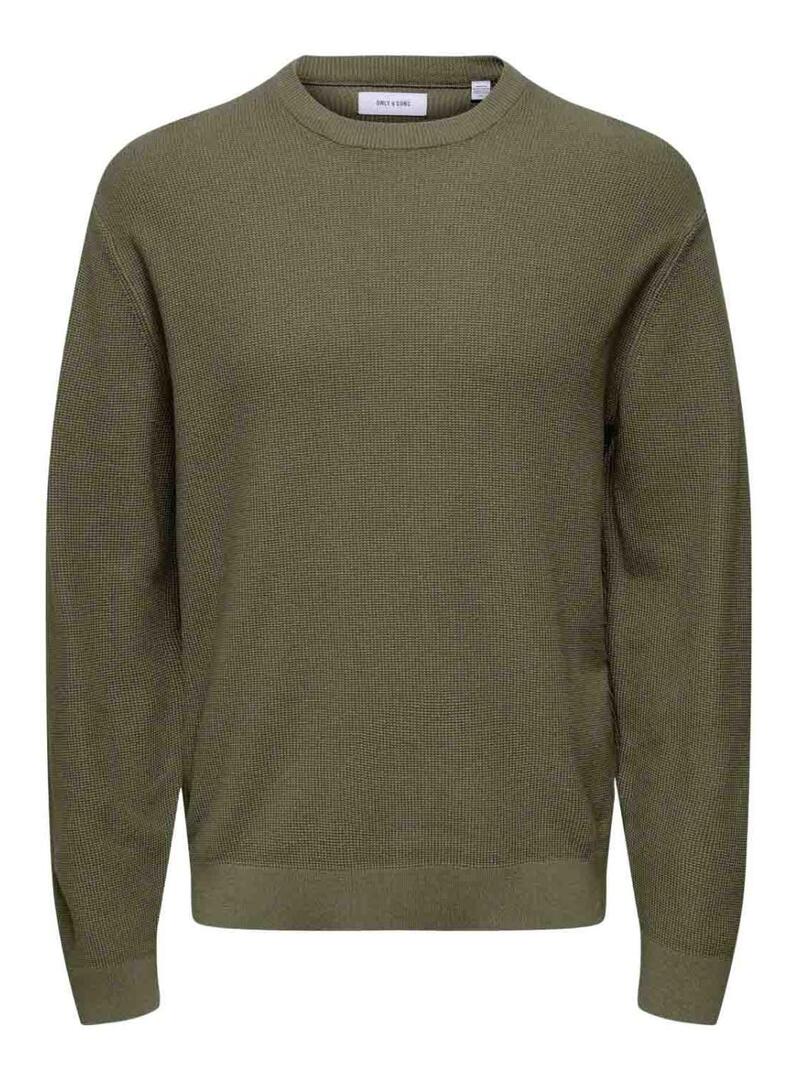 Maglia Only and Sons. Modello Onstony. Colore verde. Collo rotondo. Manica lunga. Orli a costine. Vestibilità regolare. Stile basic. Tessuto a maglia con design a nido d'ape testurizzato.