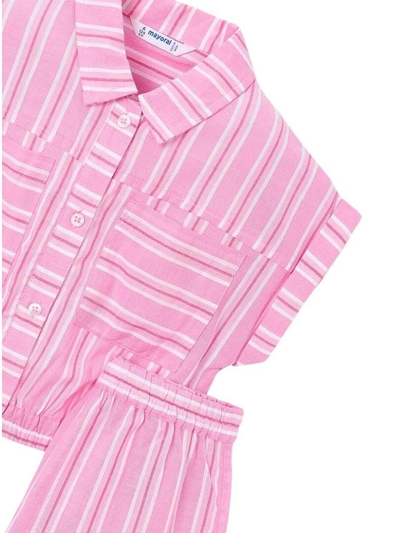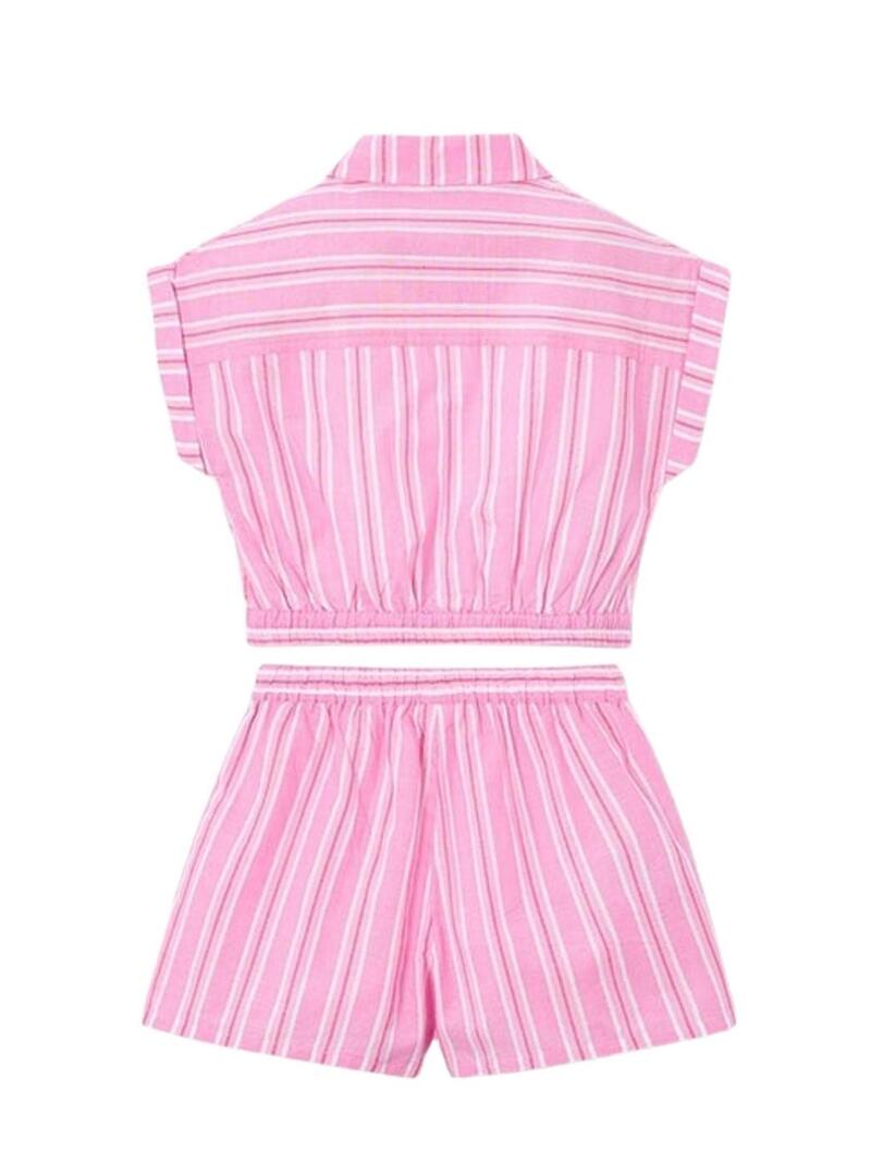Set Mayoral. Colore rosa. Tessuto a righe stampato. Camicia a manica corta. Vestibilità comoda. Manica corta. Lunghezza cropped. Tasche sul petto. Pantaloncini corti con vita elastica.