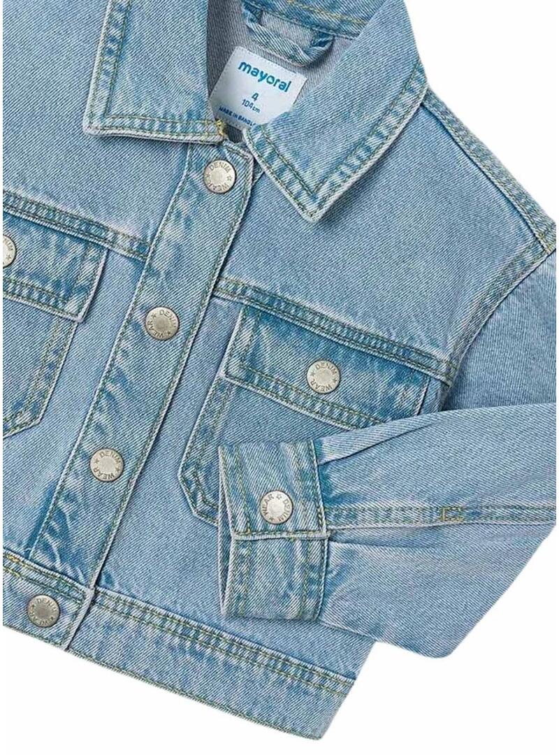 Giacca di jeans Mayoral. Modello base. Denim chiaro. Chiusura con bottoni metallici. Lunghezza in vita. Vestibilità diritta. Tasche con patta sul davanti.