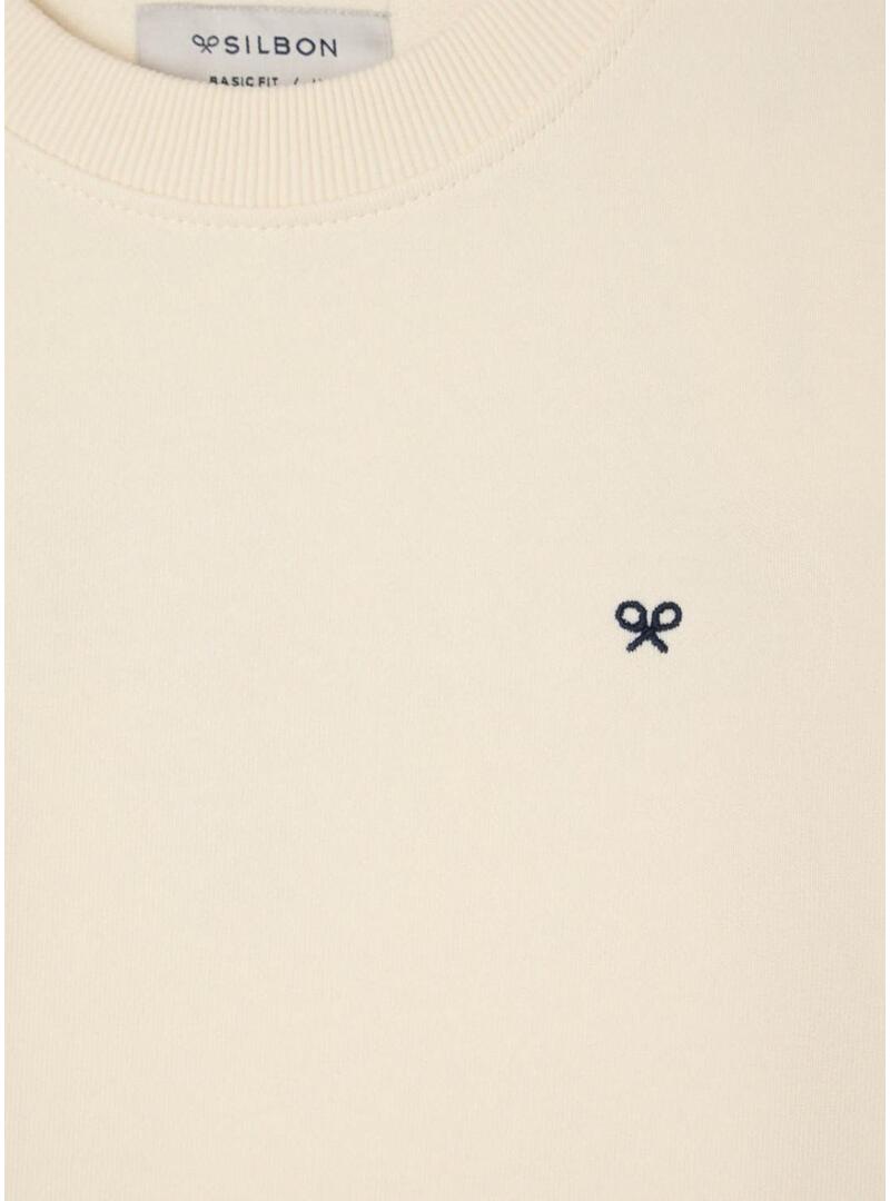 Felpa Silbon. Modello etnico. Colore crema. Collo rotondo. Orli a costine. Vestibilità regolare. Logo ricamato sul petto e sulla schiena in tonalità di blu.